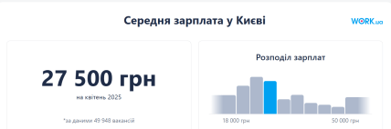 Додамо, що середня зарплата по Києву, за даними сайту Work.Ua, становить 27 500 гривень.