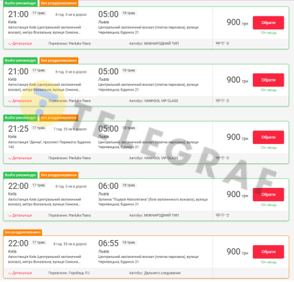 Перевізники пропонують щоденні рейси з Києва до Львова. Вартість квитка стартує від 550 грн. Час у дорозі — приблизно 7-8 годин.