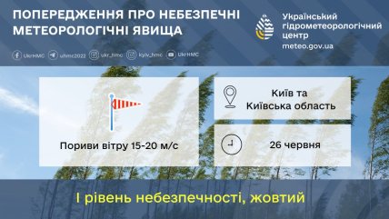 У четвер, 26 червня, столиця та Київщина прокинуться під акомпанемент рвучкого вітру й мінливої хмарності. Літній день розпочнеться з дощу, а далі природа візьме паузу — без опадів, але з відчутною прохолодою та поривами вітру.