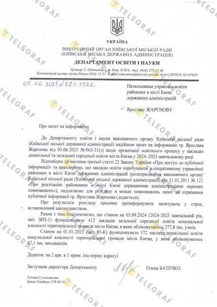 Отже, як повідомили "Телеграфу" в Департаменті освіти і науки КМДА, на початок 2024–2025 навчального року (станом на 5 вересня 2024 року) у Києві працювали 412 закладів загальної середньої освіти комунальної форми власності, де навчалося понад 277 тисяч учнів. Для порівняння, у 2019–2020 навчальному році в закладах загальної середньої освіти денної форми навчання міста Києва навчалося 307 897 учнів.