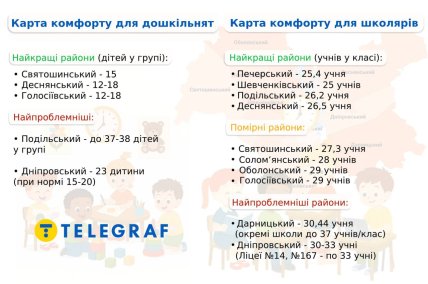 - Дніпровському районі — 23 дитини (при нормі 15–20).