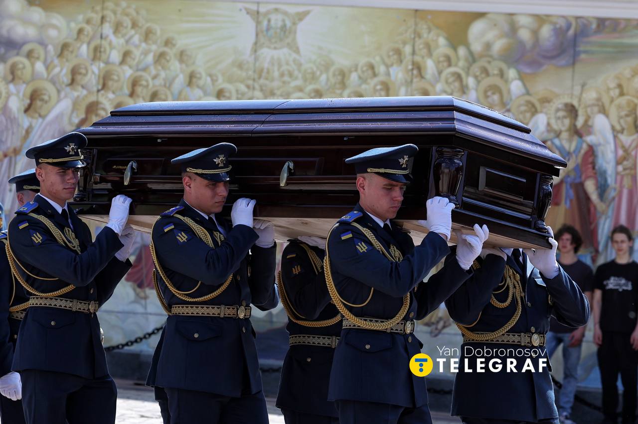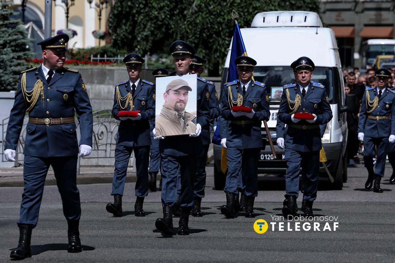 "Сьогодні ми віддаємо останню шану полковнику Повітряних сил ЗСУ. Йому назавжди залишиться 32. Це чудовий вік, щоб жити любити, творити добро. Він залишив цей світ непереможним, нашим героєм", — сказав розпорядник від почесної варти.