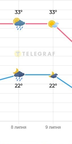 Денна температура в ці дні зафіксується біля +33 градусів, а нічна — близько +22 градусів. Сила вітрів тим часом не розгуляється вище сильних 12 м/с.