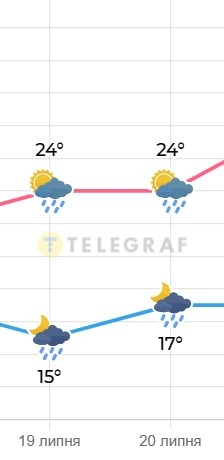 За даними Українського гідрометеорологічного центру, температура на вихідних не опуститься нижче +24 градусів. Хоча у Meteofor прогнозують місцями до +21 градусів.