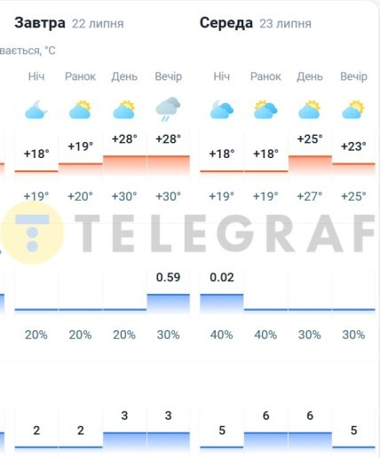 Найближчими днями, 22 та 23 липня, погода у Києві не зміниться — буде трошки хмарною, мокрою, але теплою, як повідомили у Meteofor та Погода.Мета. Хоча синоптики попереджають про ймовірні свіжі-сильні вітри.