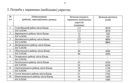 На фото вище вказано, де і скільки укриттів може з'явитись в Києві, а також, яку кількість осіб вони можуть вміщувати. Наприклад, у Голосіївському районі – 111 укриттів, у Деснянському – 127 тощо.