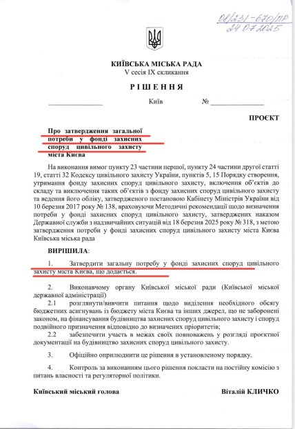 "Проте як і коли цей проєкт рішення буде прийнято я не знаю, адже сесії поки не скликають… Хоча під цей проєкт рішення, мабуть, все ж збереться, бо це ж велика відповідальність перед киянами — безпека людей в період війни", — додає Кривошея.