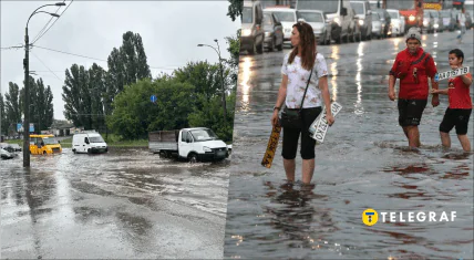 Київ вчергове затопило через сильну зливу, грім якої досить сильно налякав українців. У мережі вже з'являються жарти про залиті водою дороги.