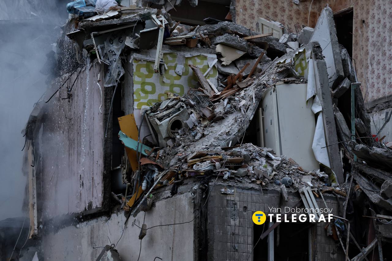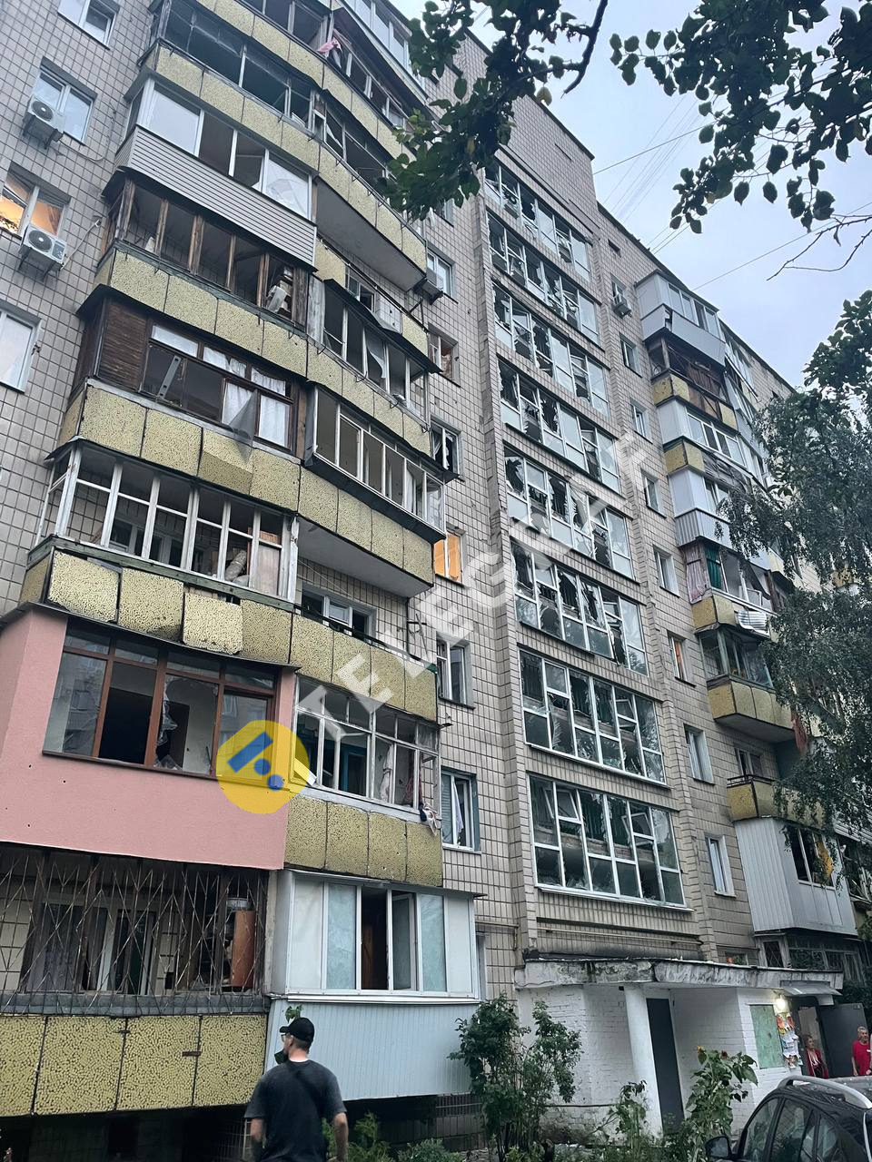 У Святошинському районі зруйнований під'їзд житлового будинку. Екстрені служби працюють на місці та розбирають завали. Житловий будинок сильно постраждав внаслідок обстрілу. Також пожежі зафіксували в кількох нежитлових будівлях. На місці атаки перебував кореспондент "Телеграфу" Ян Доброносов. Повний фоторепортаж — дивіться у матеріалі "Телеграфу" за посиланням.