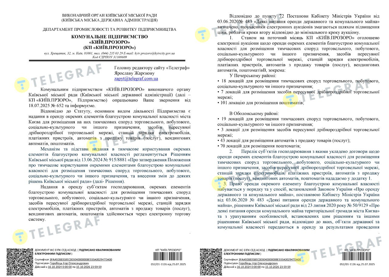 "Телеграф" вивчив перелік фірм, з якими КП "Київ.Прозоро" вже уклало договори на оренду "елементів благоустрою" та отримало пояснення, що має влада на увазі під цим терміном і яким чином розраховувались орендні ставки.