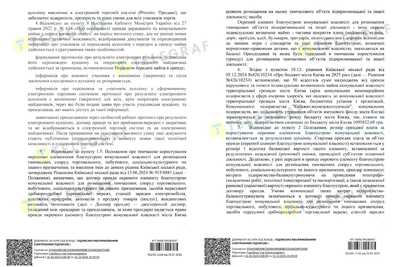 Влада наголошує, що нові правила у сфері розміщення тимчасових споруд/МАФів дали можливість відійти від кулуарних домовленостей, адже тепер орендарі визначаються за результатами прозорих онлайн-аукціонів. Але тут є "нюанс", як-то кажуть, бо інформація на порталі "Prozorro.Продажі" щодо перебігу торгів – учасників, їхніх ставок, результатів є закритою. В комунальному підприємстві пояснюють, що це регламентовано урядовою постановою (п. 8 Постанови Кабінету Міністрів України від 27 травня 2022 р. № 63) і такі особливості передачі в оренду державного та комунального майна на конкурсних засадах діятимуть протягом періоду воєнного стану. Такий формат, звісно, не дає можливості перевірити реальний рівень конкуренції на аукціонах, зокрема, чи не фігурують в них технічні учасники й чи не демпінгують вони ціни.