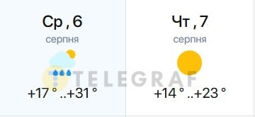 Схожий прогноз погоди у Києві дав і Meteo. Середа, окрім хмарності, принесе дощі, але вони прогнозуються вранці та вдень. У четвер же небо проясниться.