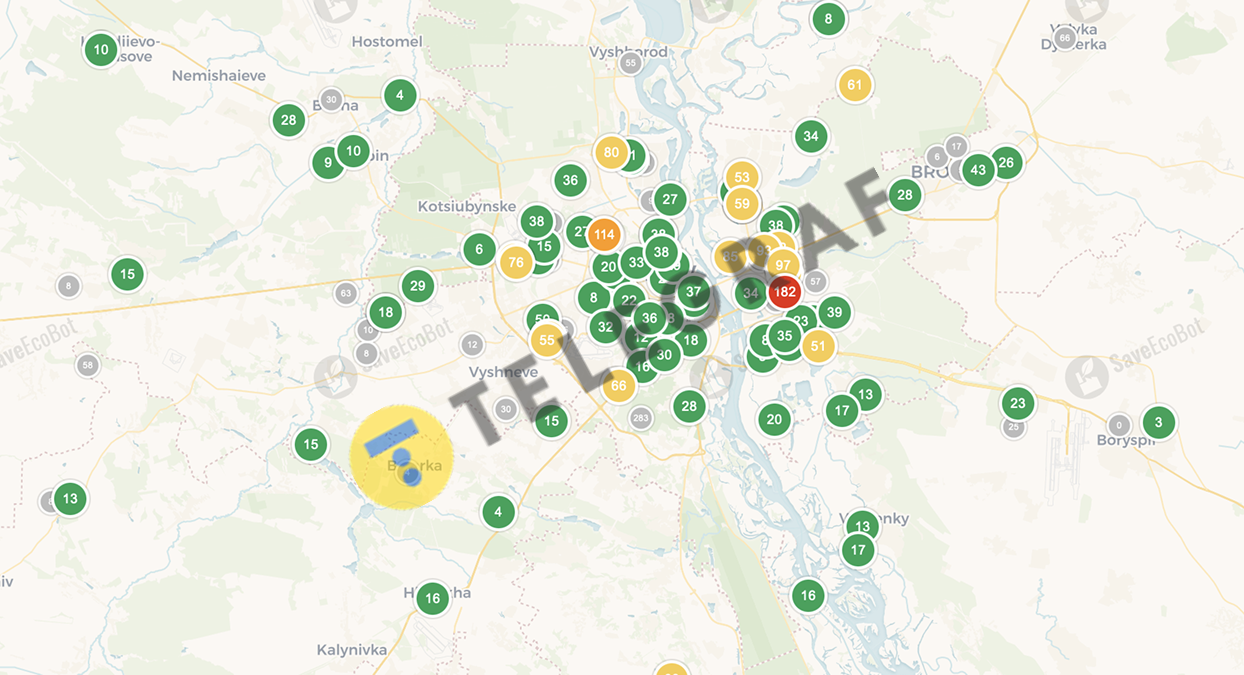 Решта районів столиці наразі демонструють показники в зеленій зоні, що відповідає задовільній якості повітря. Найкращі показники зафіксовані на периферії міста, тоді як центральні райони показують помірне підвищення рівня забруднення.
