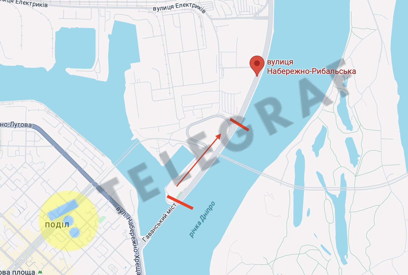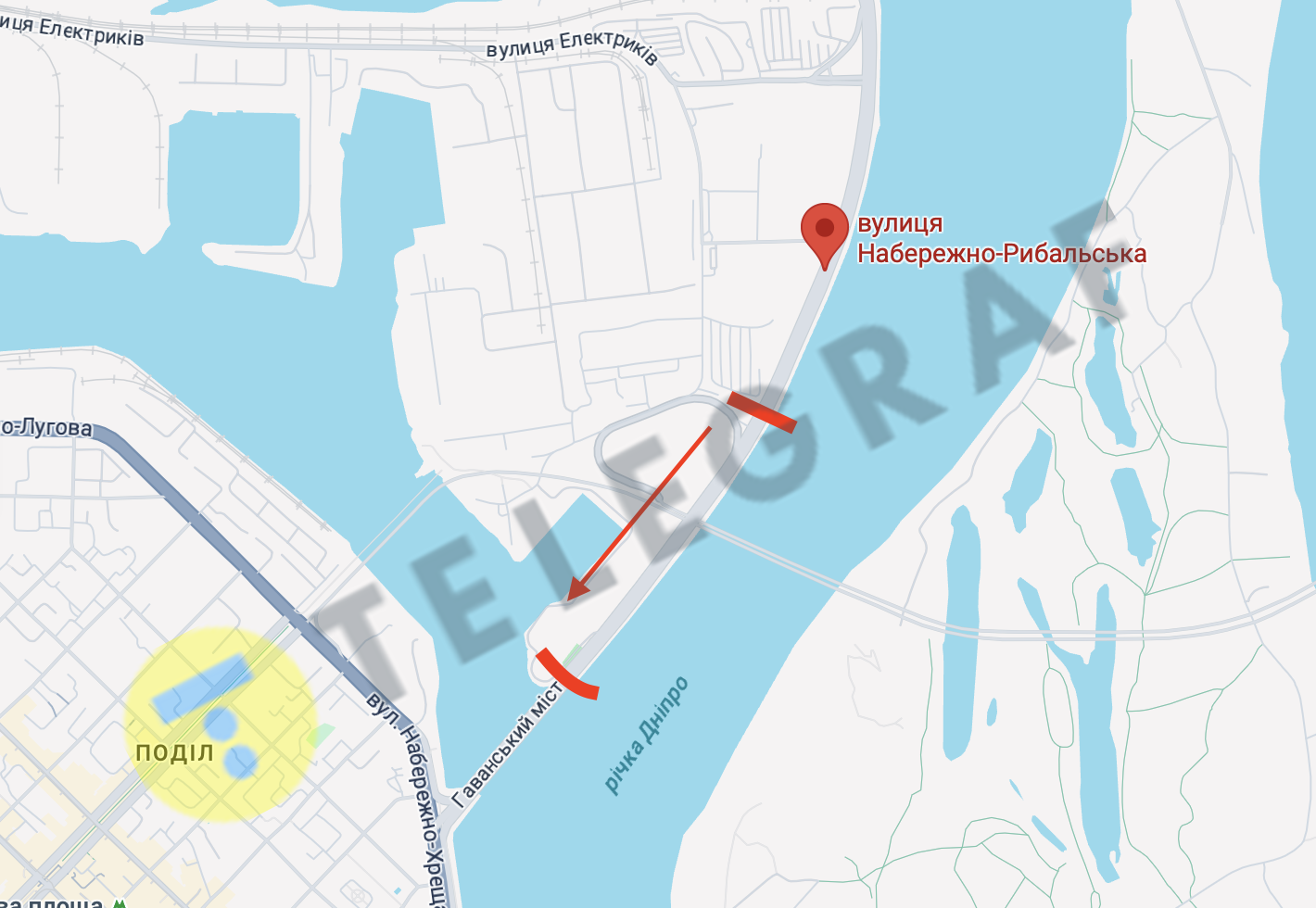 - вул. Набережно-Рибальська (від вул. Електриків до Гаванського мосту).