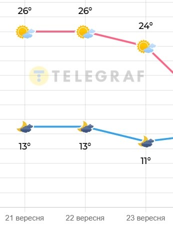 За даними Meteofor та Українського гідрометеорологічного центру, найближчими днями на небі майже не буде хмар. Температура не впаде нижче +25 градусів.