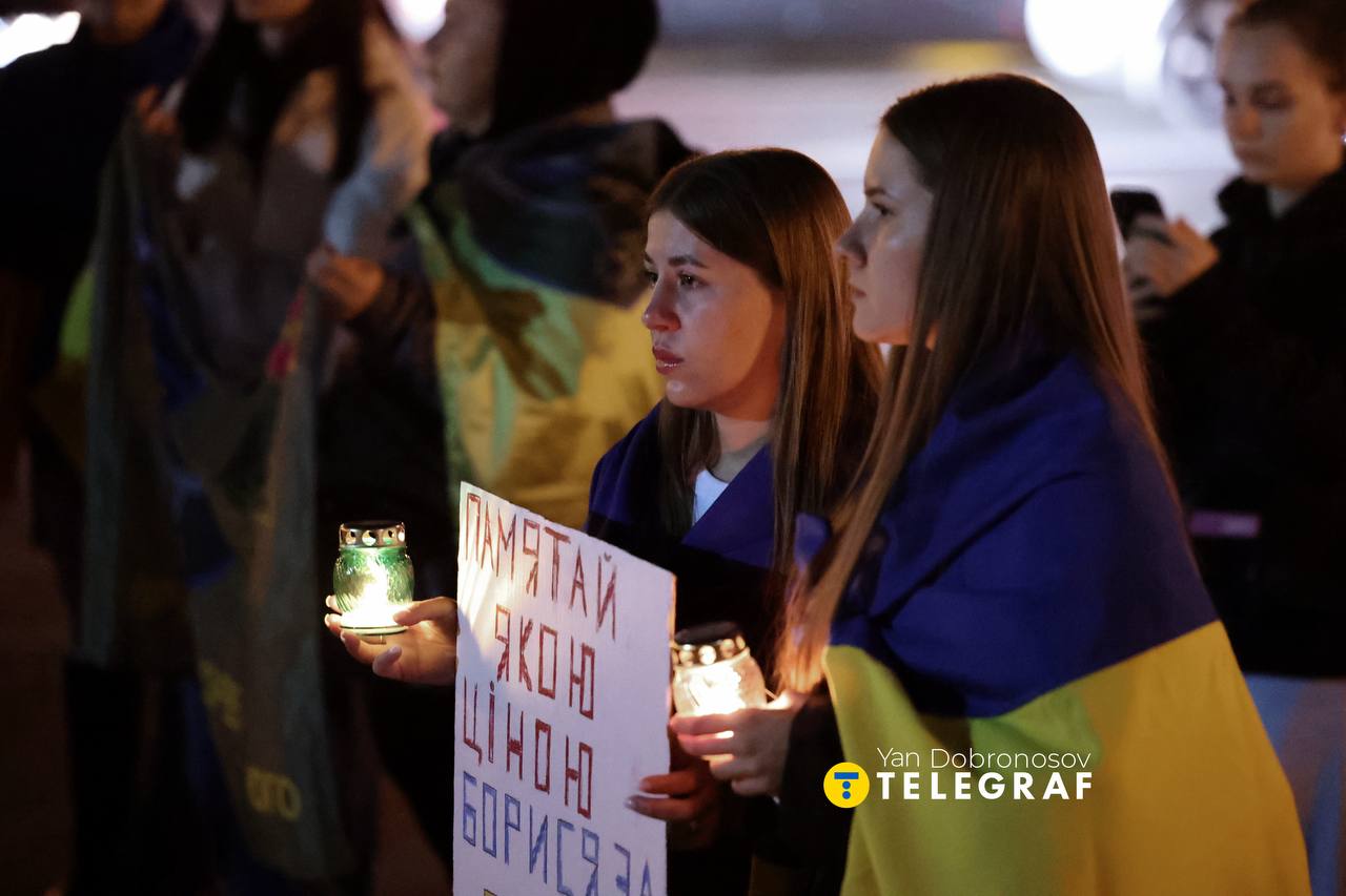 На вечері вшанування пам'яті загиблих, зниклих та полонених Захисників України був і кореспондент "Телеграфу" Ян Доброносов. Підготовка до вечора пам'яті почалась, коли ще на вулиці було світло. Люди приносили лампадки, які виставили на сходинках. І вже коли почало сутеніти, запалювали їх.