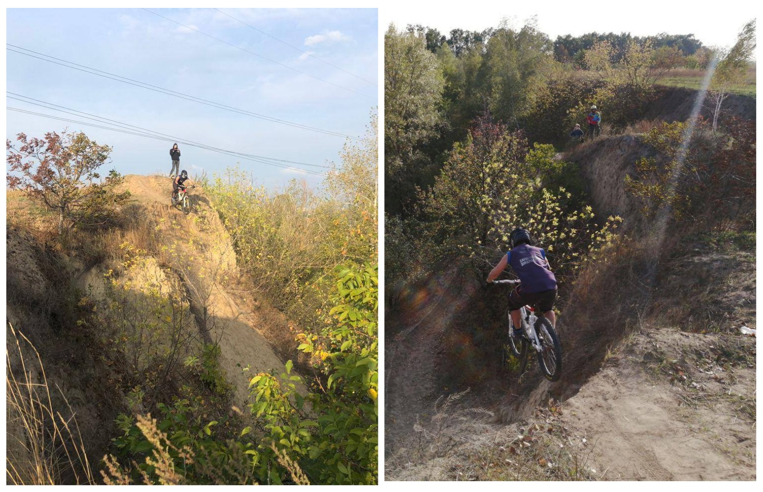 За словами Євгена, в цьому районі також знаходилась унікальна велотраса з перепадами висоти майже в 90 метрів та довжиною 860. Вона створювалась власними силами спортсменів, основний маршрут проходив від Голосієвського лісу зверху вниз до кар'єрного озера, крім того було ще кілька трейлів (веломаршрутів), які потерпали в тому числі і від стихійного засмічення цієї території.