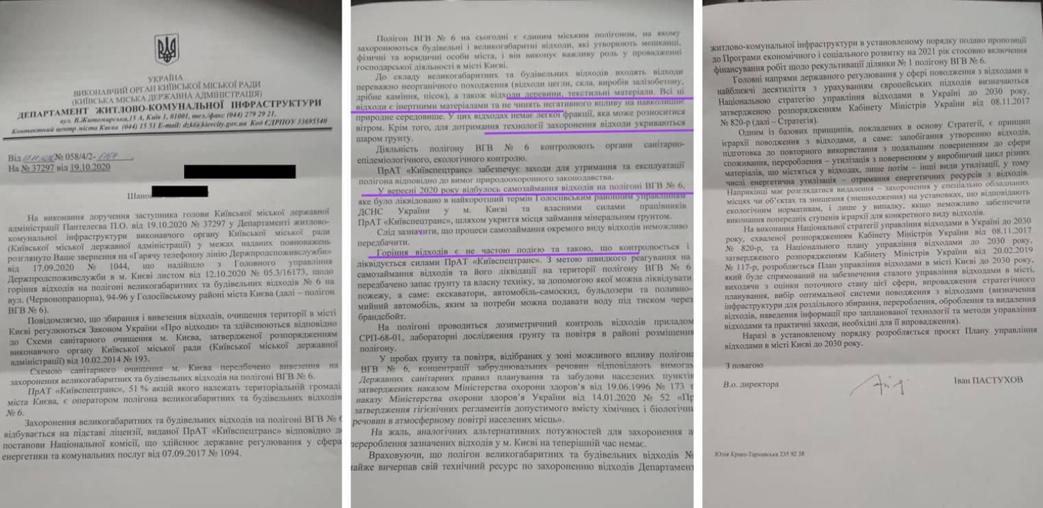Щоб дізнатись про бачення київської міської влади щодо подальшої долі полігонів та загалом ситуації з управління відходами, "Телеграф" звернувся з запитом до КМДА. Але на момент публікації відповіді не отримав. Так само як проігнорувало пропозицію прокоментувати поточну ситуацію на полігонах № 5 та 6 та перспективи подальшого існування об'єктів керівництво ПрАТ "Київспецтранс".