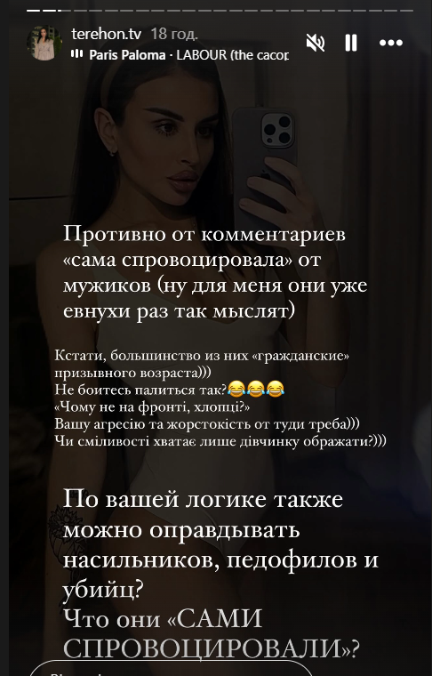 Тереховська відреагувала на дискусію та заявила — жорстоких коментаторів треба на фронт.
