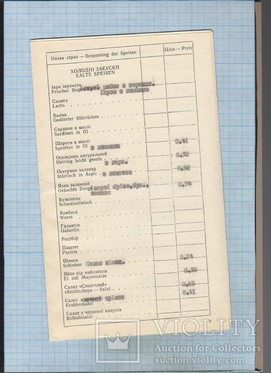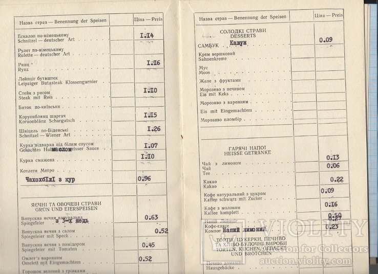 На сайті колекціонерів Violity у 2020 році було продано оригінальне меню закладу. Виглядало воно так: