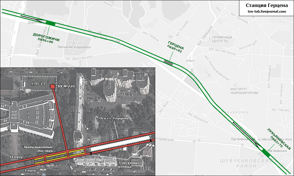Ще одна недобудована станція "Герцена" на Сирецько-Печерській лінії. Її можна помітити, проїжджаючи між "Дорогожичами" і "Лук’янівською". Проте це зробити непросто, оскільки, на відміну від попередніх "привидів", на платформі "Герцена" немає просторого залу — лише кілька споруд у тунелі.