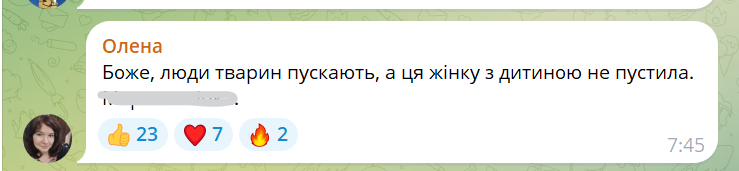 - Боже, люди тварин пускають, а ця жінку з дитиною не пустила