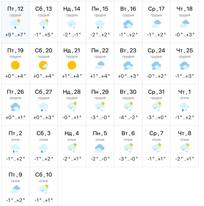 Найхолодніші дні очікуються наприкінці грудня