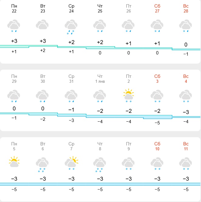 Аналогічної думки дотримуються синоптики із сайту meteofor. Їх прогноз набагато оптимістичніший, проте не скасовує похолодання та опади. Фахівці вважають, що з 5 до 11 січня може похолодати до -5 градусів.