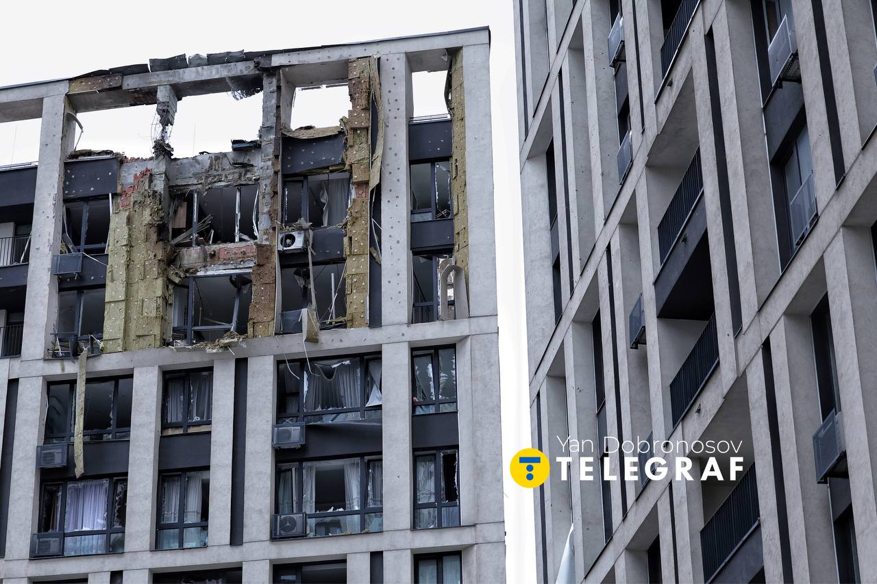 Кореспондент "Телеграфа" Ян Доброносов побував на місці влучання та поспілкувався з очевидцями. Внаслідок удару серйозно постраждали верхні поверхи будівлі. Місцями, конструкція тримається виключно на арматурі.