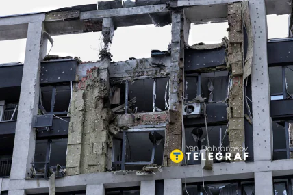 Кореспондент "Телеграфа" Ян Доброносов побував на місці влучання та поспілкувався з очевидцями. Внаслідок удару серйозно постраждали верхні поверхи будівлі. Місцями, конструкція тримається виключно на арматурі.