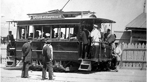 Міську залізницю на кінській тязі відкрили 1891 року, її будували за проєктом Аманда Струве з 1886. В парку було 70 коней. Але на деякі пагорби затягнути вагон їм не вистачало сил, тож в 1890 Струве запропонував Київській управі революційну ідею — збудувати електричні трамваї.