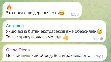 Дехто з підписників звернув увагу на містичний присмак того, що відбувається, припускаючи, що це шабаш. Також іронізували, що це спроба викликати світло чи весну за допомогою язичницького обряду. Інші з позитивом відреагували на відродження зв’язку із духами предків.