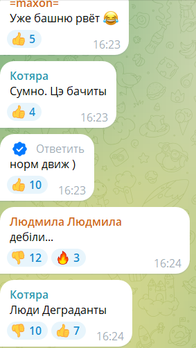 Відповідне відео оприлюднюють місцеві Telegram-канали. У титрах написано, що люди збожеволіли без світла.
