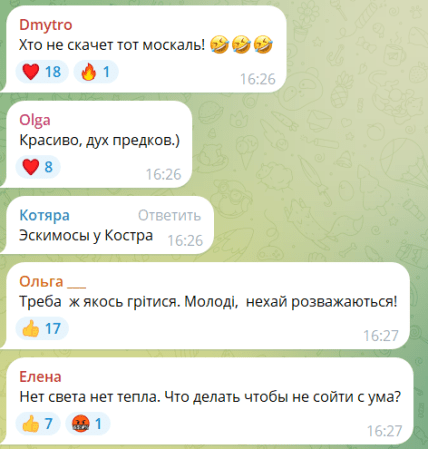 Думки інтернет-користувачів розділилися. Частина коментаторів зазначає, що столиця повертається до Середньовіччя, а то й до племінного суспільства. Позитивніші українці вказують на те, що кияни не сумують і попри важку ситуацію знаходять спосіб зігрітися і навіть повеселитися.