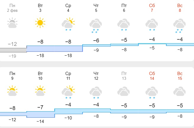 Такий прогноз дають і синоптики Meteo.ua. Вони також передбачають потепління з 5 до 7 лютого. Цими днями може потепліти до -4-7 градусів. Можливий сніг. Але сильні морози повернуться з 8-го числа, коли температура впаде до -14 градусів.