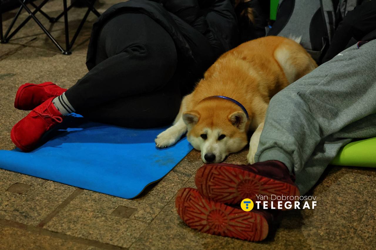 Через російські обстріли у метро ночує багато дітей. Чимало дитячих візків. Також люди беруть в підземку улюбленців — песиків та котиків.