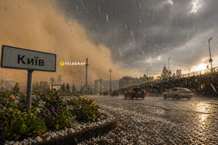 Вдень 23 квітня Київ та Київську область накрила негода. У місті спочатку почалася пилова буря, а потім пішов сильний град.