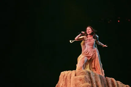 На сцені виконавиці без танцівників та беквокалу. Співачки постали у світлих вбраннях та з обладунками. Jerry Heil босоніж підкорює вершину "гори" — кам’яної декорації. Позаду неї вогняні спалахи на величезному екрані, інтенсивність яких збільшується.