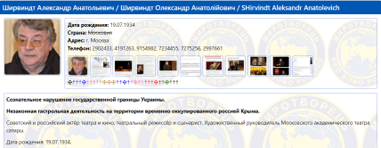 Ширвіндт включено до бази даних "Миротворця" через незаконне проведення гастрольних виступів на території тимчасово окупованого Росією Криму.