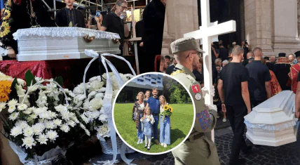 Усіх загиблих членів родини поховали у білих трунах та з білими хрестами.