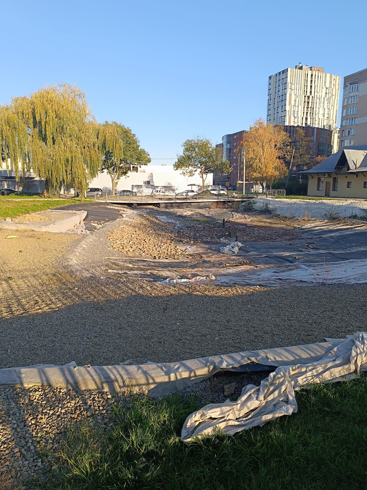 "Чотири роки як знищили озеро, те, яке було, на якому таки були дикі качки, і зараз стоїть напіврозвалений будівельний майданчик з пересохлими мембранами і трубами, з дуже небезпечними металевими штирями, які стирчать із землі(а там ходить купа дітей і нікого з чиновників це не турбує), так і не завершили дитячий майданчик який мали реконструювати, ні лавочок, ні освітлення звичайно теж нема. Що є — так це зруйнований асфальт і хідники навколо озера", – писала у 2024 році народна депутатка Софія Федина.Частина мешканців побоювались, що затягування реконструкції потрібне, щоб передати землю забудовникам.