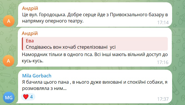 У коментарях до запису городяни стурбувалися тим, що така зграя собак може становити загрозу для оточуючих, особливо якщо врахувати, що лише один із восьми був у наморднику. Однак знайшлися і ті, хто знає цього чоловіка особисто і запевнили, що навчанням вихованців він не знехтував.