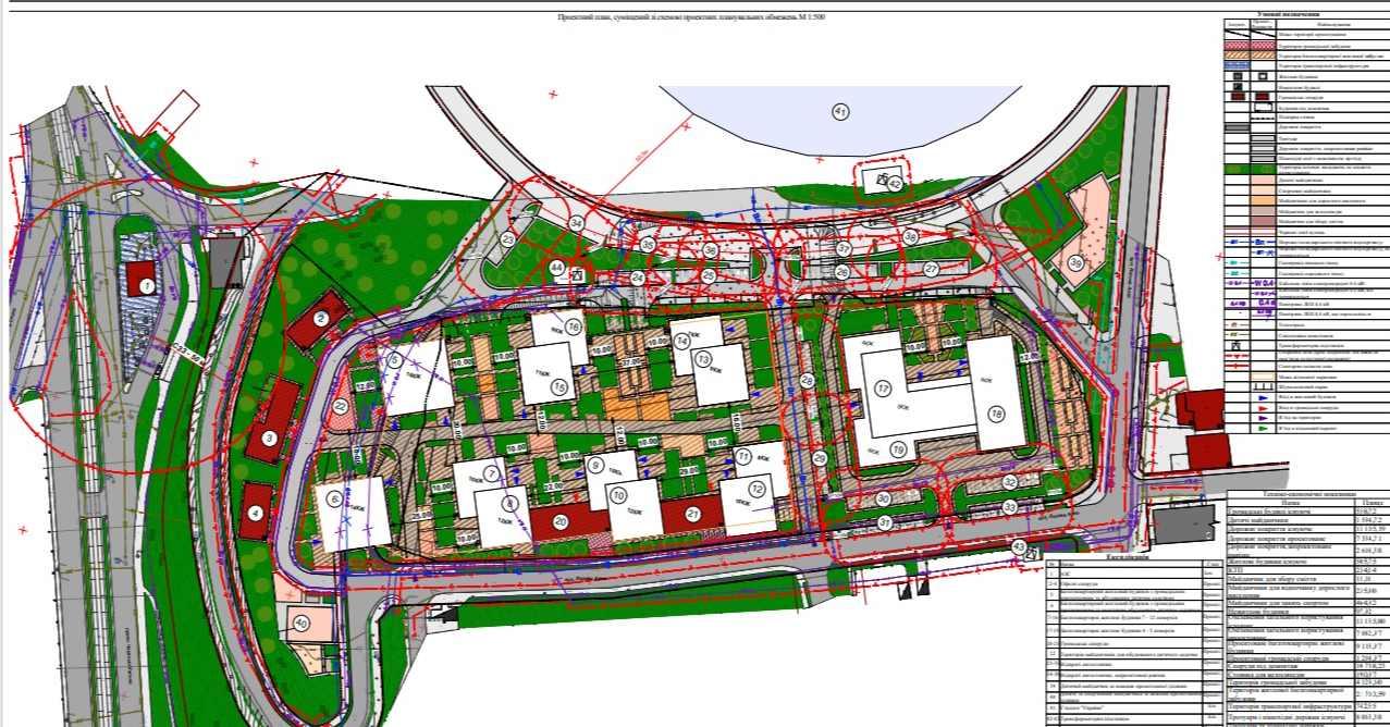На двох земельних ділянках, загальна площа яких становить 2,8 га, хочуть збудувати житловий квартал, три офісні будівлі та дві споруди громадського призначення.