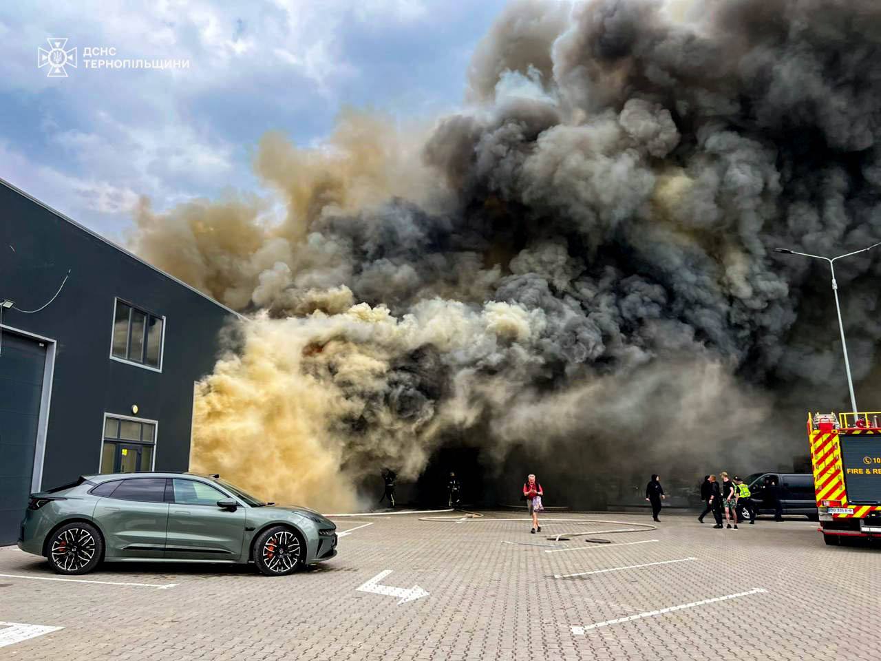 "23 травня о 13:07 до оперативно-диспетчерської служби надійшло повідомлення про пожежу на вулиці Об’їзній у місті Тернопіль. Рятувальники оперативно прибули на місце виклику. Як з’ясувалося, загорання виникло в торговельно-складських приміщеннях. До ліквідації пожежі було залучено 7 одиниць техніки та 23 рятувальники. Площа займання становила орієнтовно 300 м²", — повідомили у ДСНС.