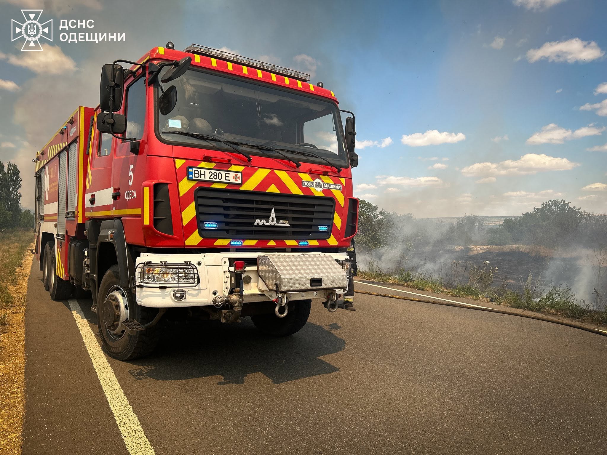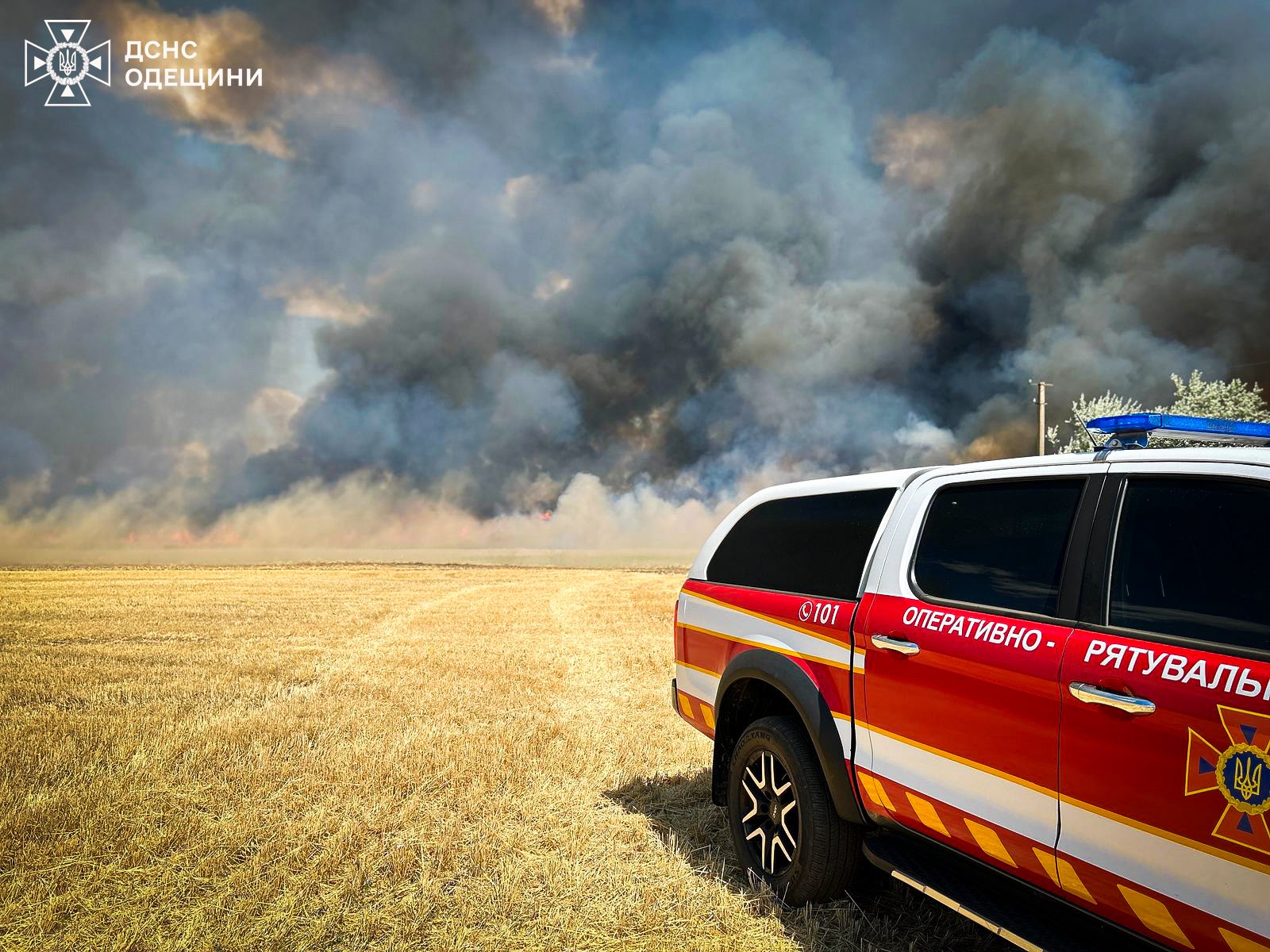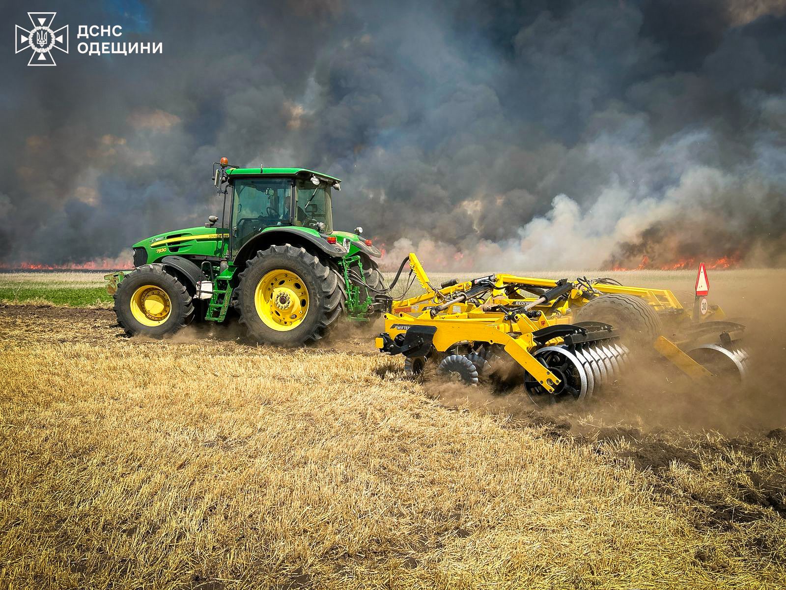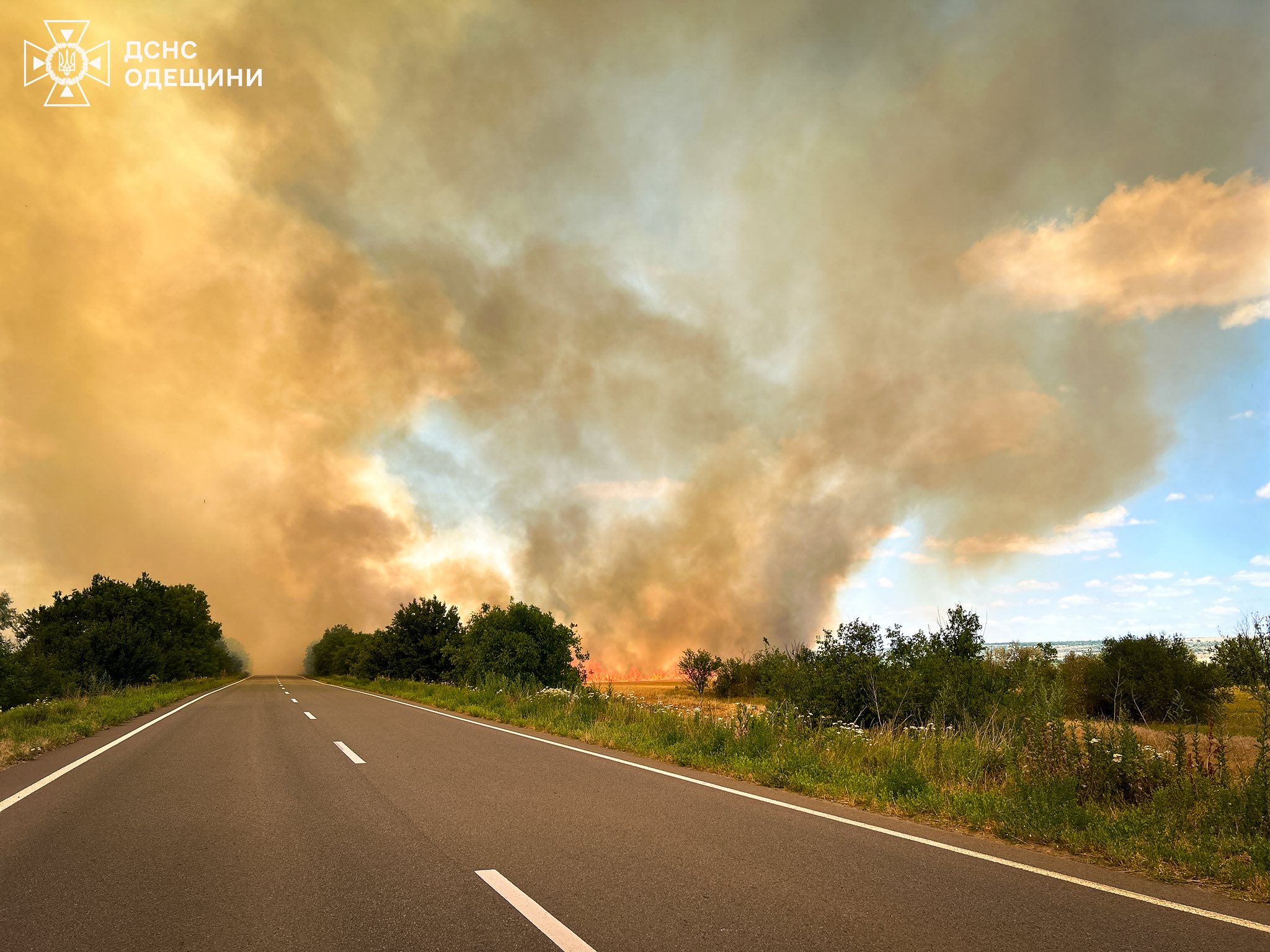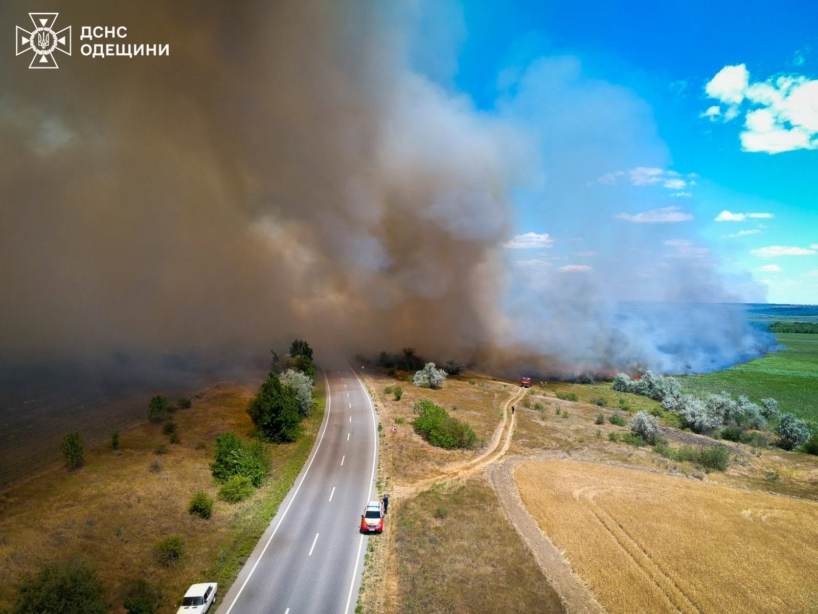 У Березівському районі на Одещині триває масштабна пожежа на полях, яка стрімко поширюється й загрожує населеним пунктам. Вогонь почався біля Донської Балки і вже поширився в обидві сторони, охоплюючи великі площі сільськогосподарських угідь.