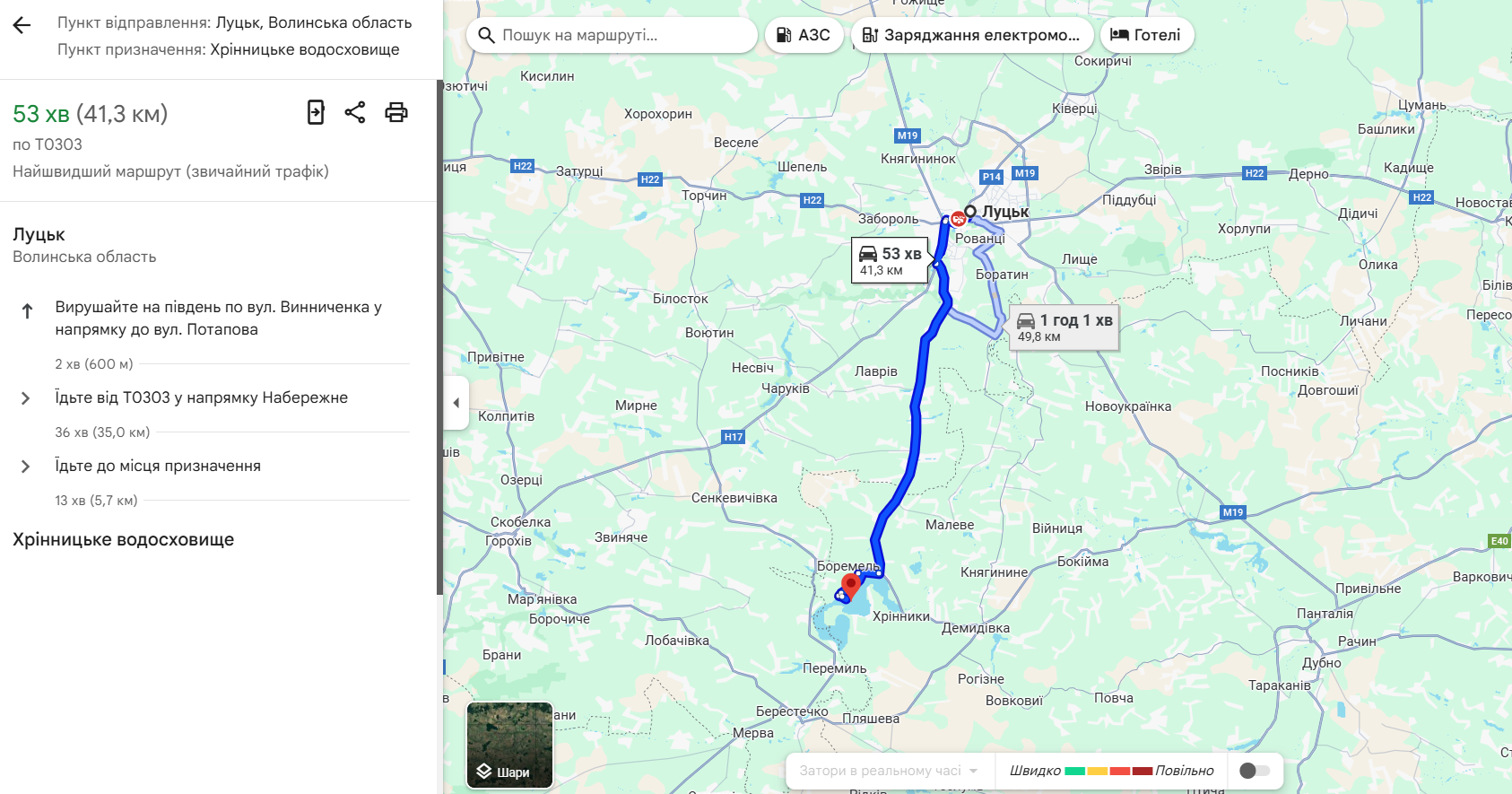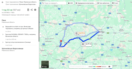 - З Рівного — орієнтовно 107 км (1 год 50 хв) по Е40/М06 і Т1806.
