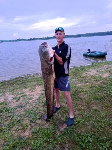 Майже 2 метри щастя: на Рівненщині чоловік витяг величезну рибу без луски (фото)