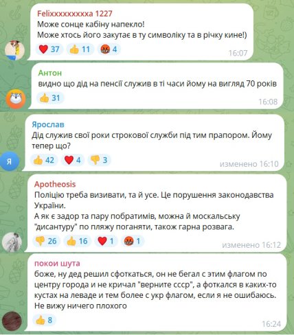 Попри війну та постійні обстріли, в Україні все ще залишаються люди, які не соромляться демонструвати радянську символіку у публічних місцях. Наприклад, у Полтаві на одному з міських пляжів чоловіки розгорнули прапор ВМФ СРСР.