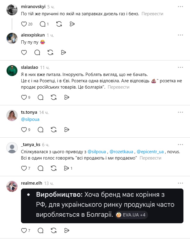 У коментарях під постом багато користувачів були збентежені цим фактом, проте знайшлися й ті, які заглибилися в тему та з’ясували, що для українського ринку цей товар виробляють у Болгарії.