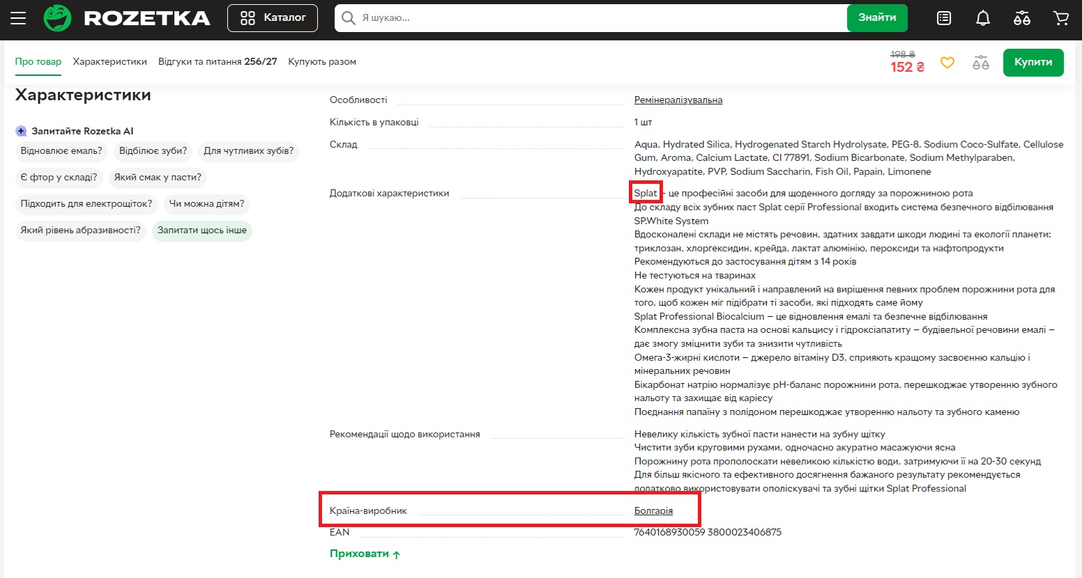 Справді, на одному з українських маркетплейсів, де можна побачити країну-виробника, вказана саме Болгарія.